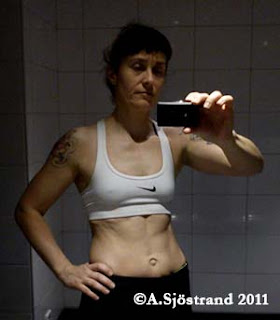 Idag blev det rygg och cardio (15min crosstrainer och 45min gång på löpbandet). Inga vikter att snacka om i ryggträningen, rätt sliten nu efter många dagars träning utan vila. Övningar för rygg idag blev; hantelrodd (upp till 22kg), latsdrag i maskin (inte lönt räkna vikterna där inte...de stämmer aldrig ändå), sittande rodd i dragmaskin, marklyft med hantlar (20kg hantlar), vanliga marklyft med stång (50kg, nu var jag trött!), chins i maskin med assistans och någon annan sorts ryggmaskin ala roddvariant... Sen var det klart!